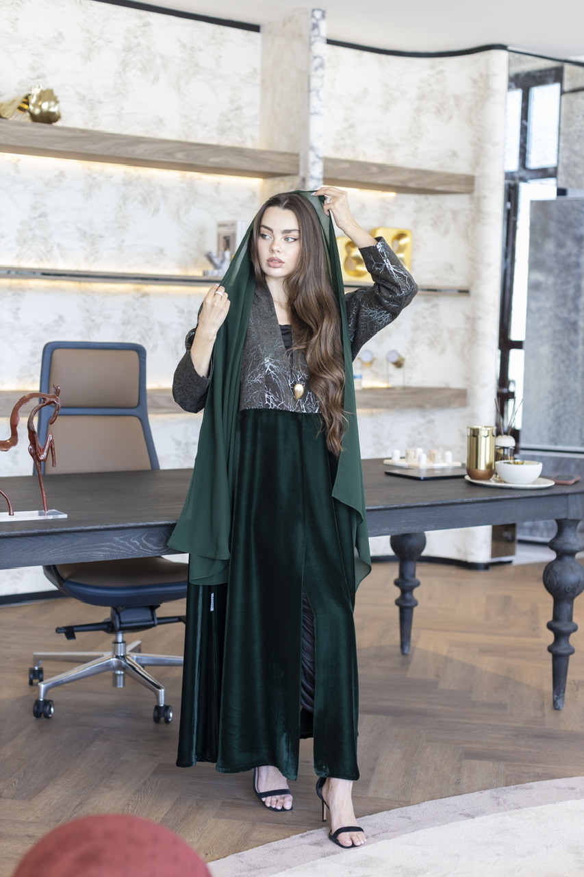 رمز المنتج : D126/A ازرار: نعم نوع القماش : كريب خفيف شامل الشيلة : نعم نوع الشيلة: سادة قماش الشيلة: برج الإمارات قياس الشيلة: 80 إنش تنظيف : تنظيف جاف ملاحظة: العارضة ترتدي مقاس (كلوش) (الطول 52 ،الصدر 22، الكم 28)