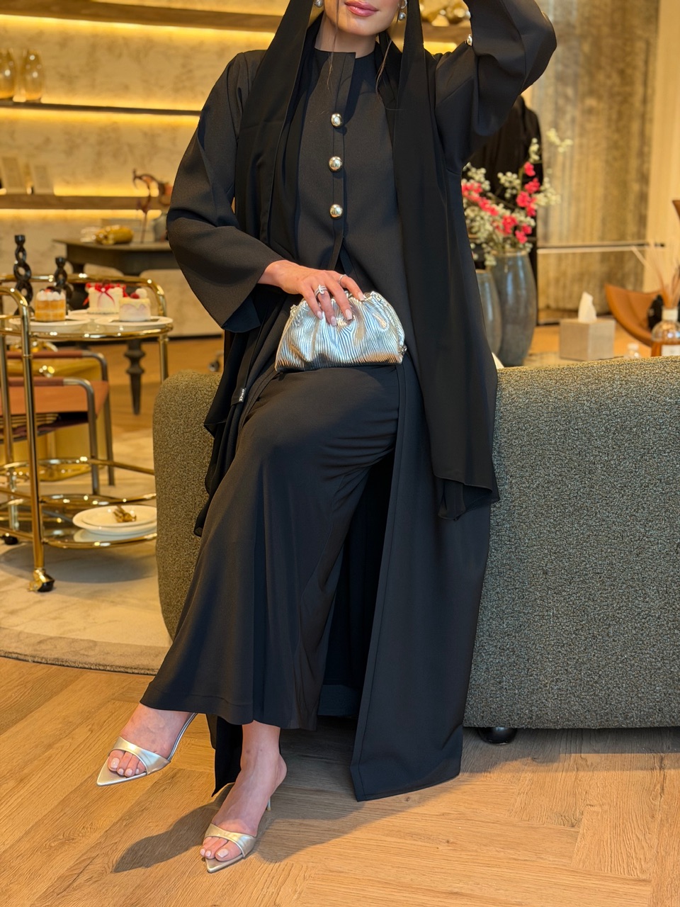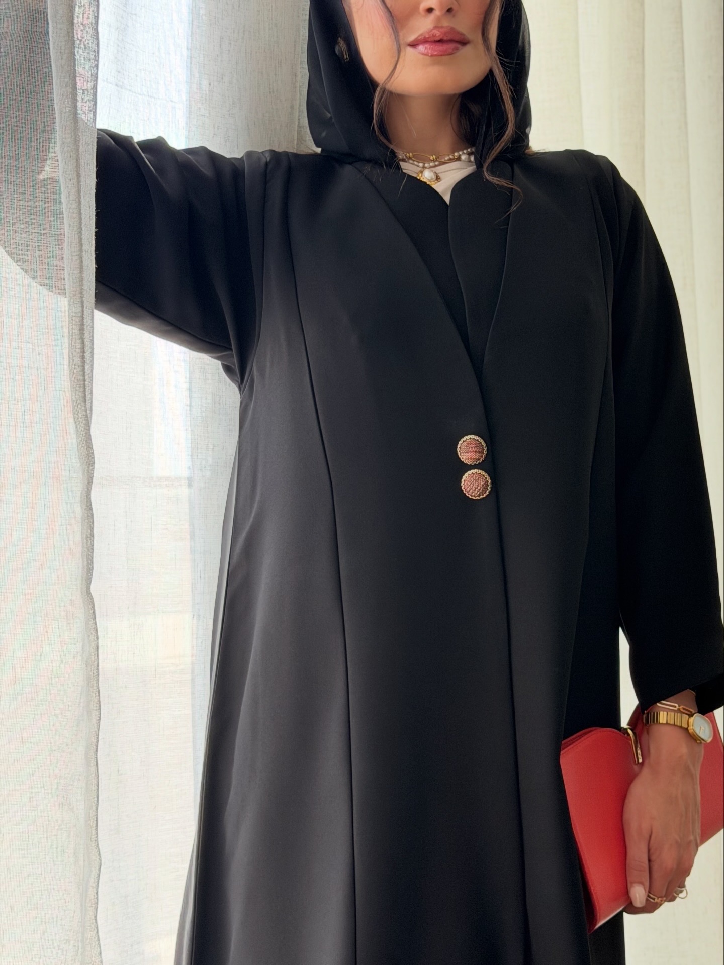 رمز المنتج : D253 ازرار؛ لا نوع القماش : انترنت شامل الشيلة : نعم نوع الشيلة: سادة قماش الشيلة: برج الإمارات قياس الشيلة: 80 إنش تنظيف : تنظيف جاف ملاحظة: العارضة ترتدي مقاس (الطول 54،الصدر 22، الكم 28)